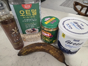 저는 오트밀 밑에깔고 바나나썰어넣고.요거트 듬뿍2~3스푼 땅콩버터 1스푼